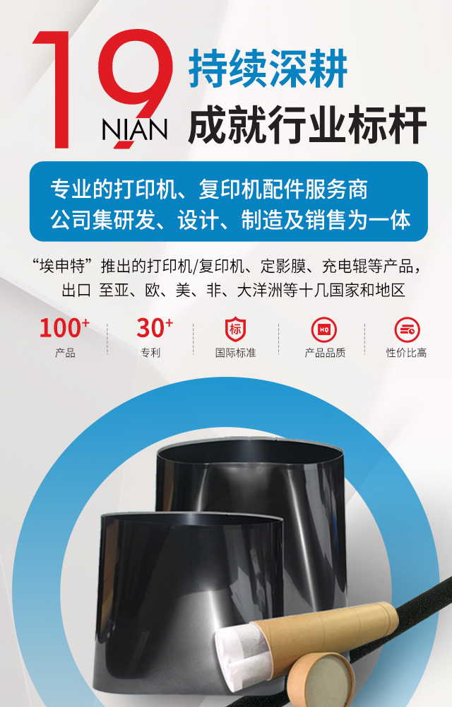 埃申特公司聯(lián)合日本公司及上海、廣州各大院校共同開發(fā)的彩機(jī)充電輥、數(shù)碼打印機(jī)、數(shù)碼傳真機(jī)的充電輥、充電膜套、轉(zhuǎn)寫膜套等產(chǎn)品